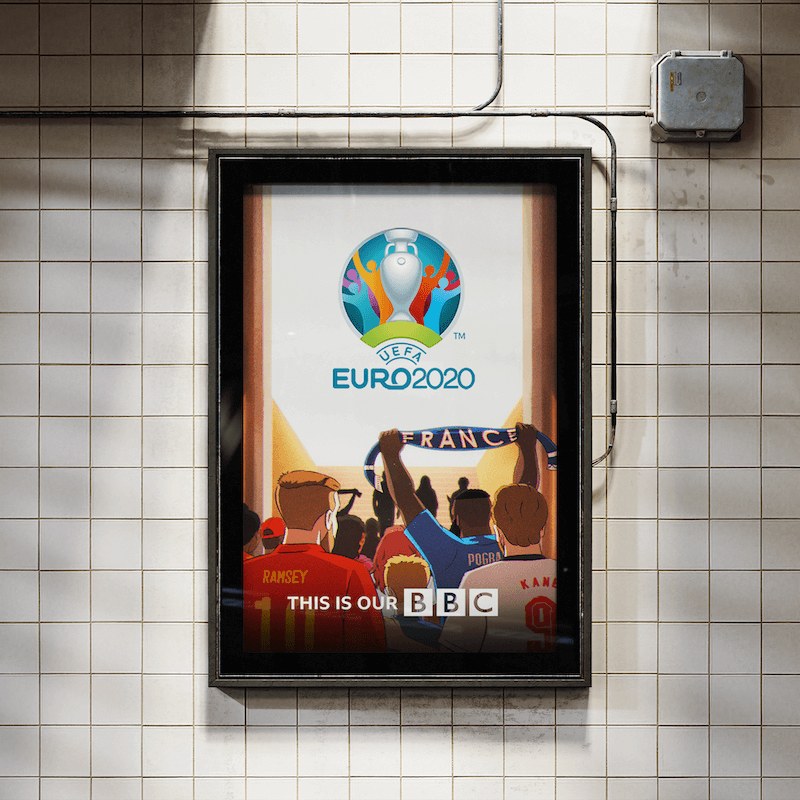 I was tasked with overseeing typography, campaign lines, branding application and consistency on the BBC Euro 2020 campaign work.